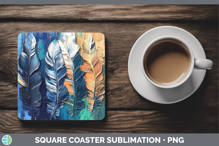 BS04 Thick Paint Boho Feathers Square Coaster Sublimation Co