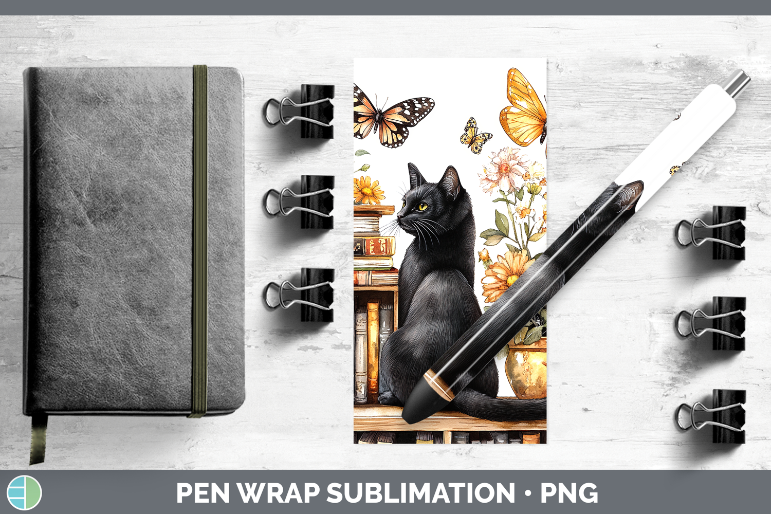 BS03 Bookshelf Black Cat Pen Wrap Sublimation Pen Designs