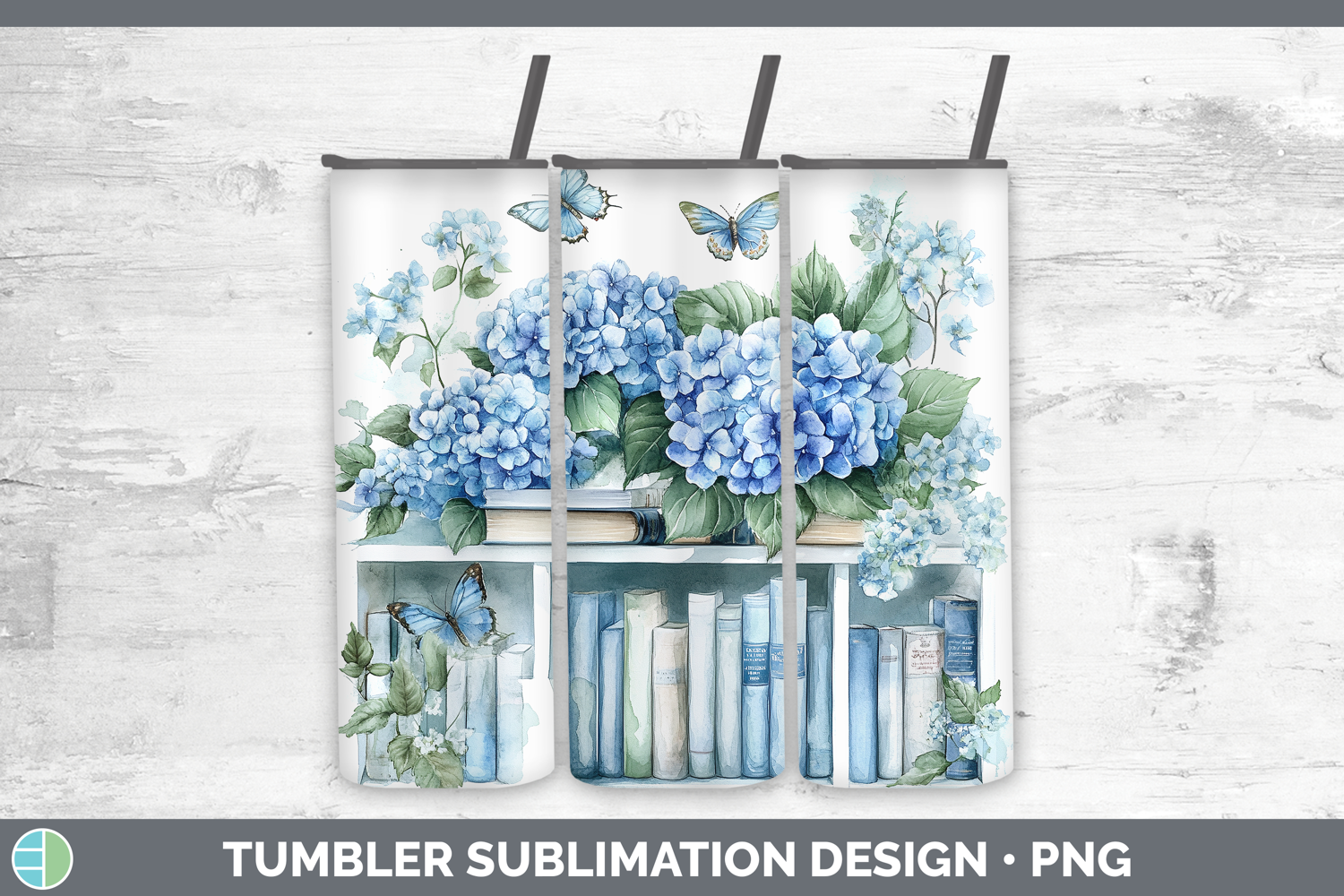 BS03 Bookshelf Hydrangea Tumbler Sublimation 20 oz Skinny Tu