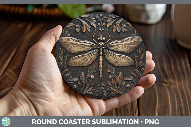 Similar Design Products to BS01 Tooled Leather Dragonfly Round Coaster Sublimation Coas