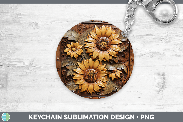 BS01 Tooled Leather Sunflower Keychain Sublimation Keyring D