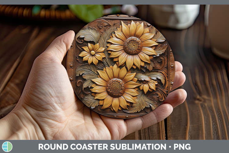 Similar Design Products to BS01 Tooled Leather Sunflower Round Coaster Sublimation Coas