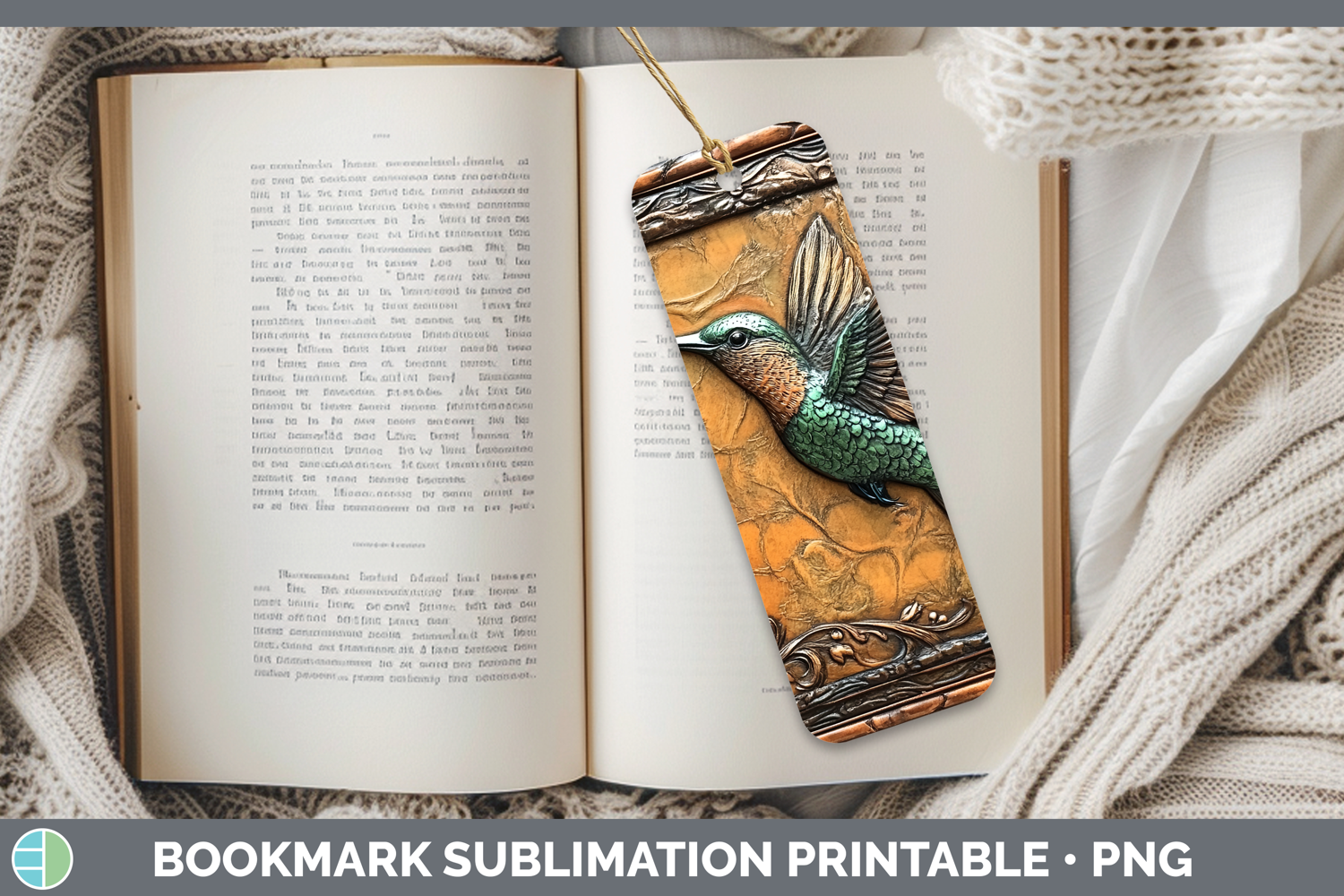 BS01 Tooled Leather Hummingbird Bookmark Sublimation Printab