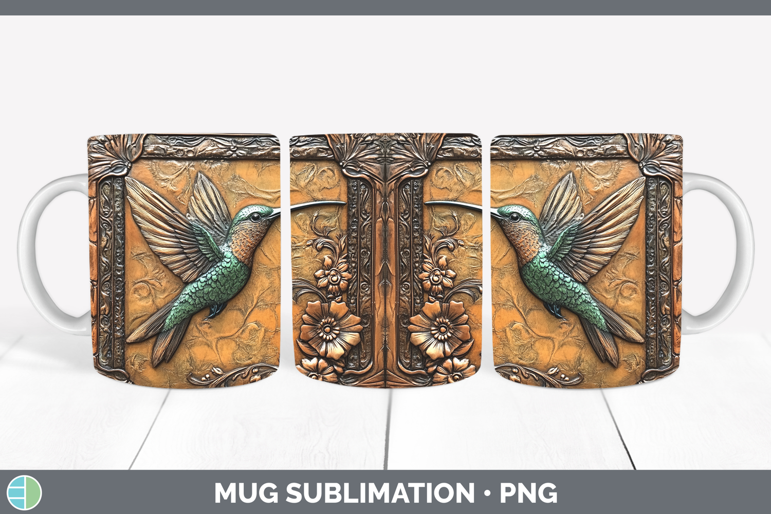 BS01 Tooled Leather Hummingbird Mug Wrap Sublimation Coffee