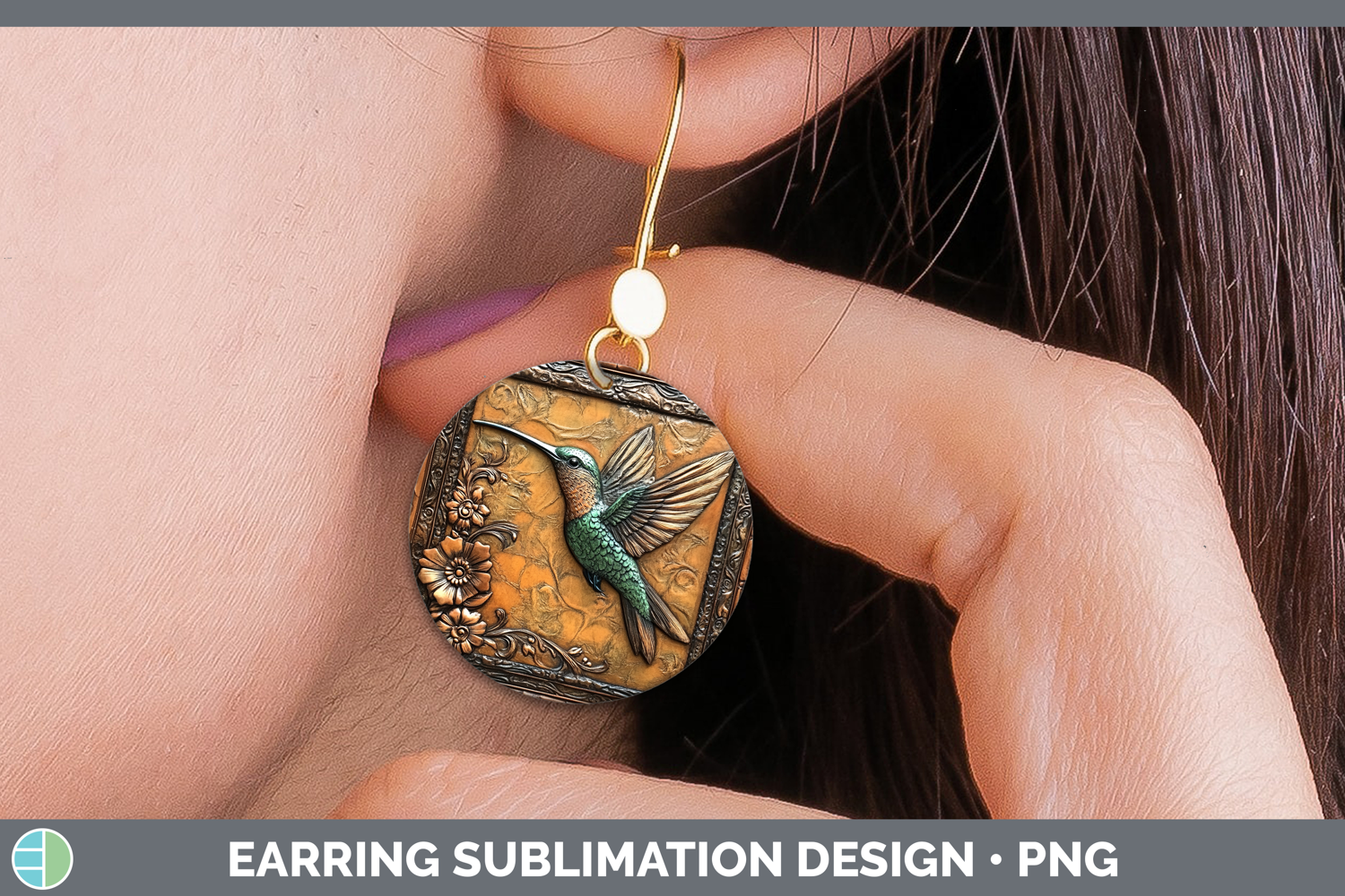 BS01 Tooled Leather Hummingbird Round Earrings Sublimation E