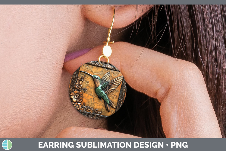 Similar Design Products to BS01 Tooled Leather Hummingbird Round Earrings Sublimation E