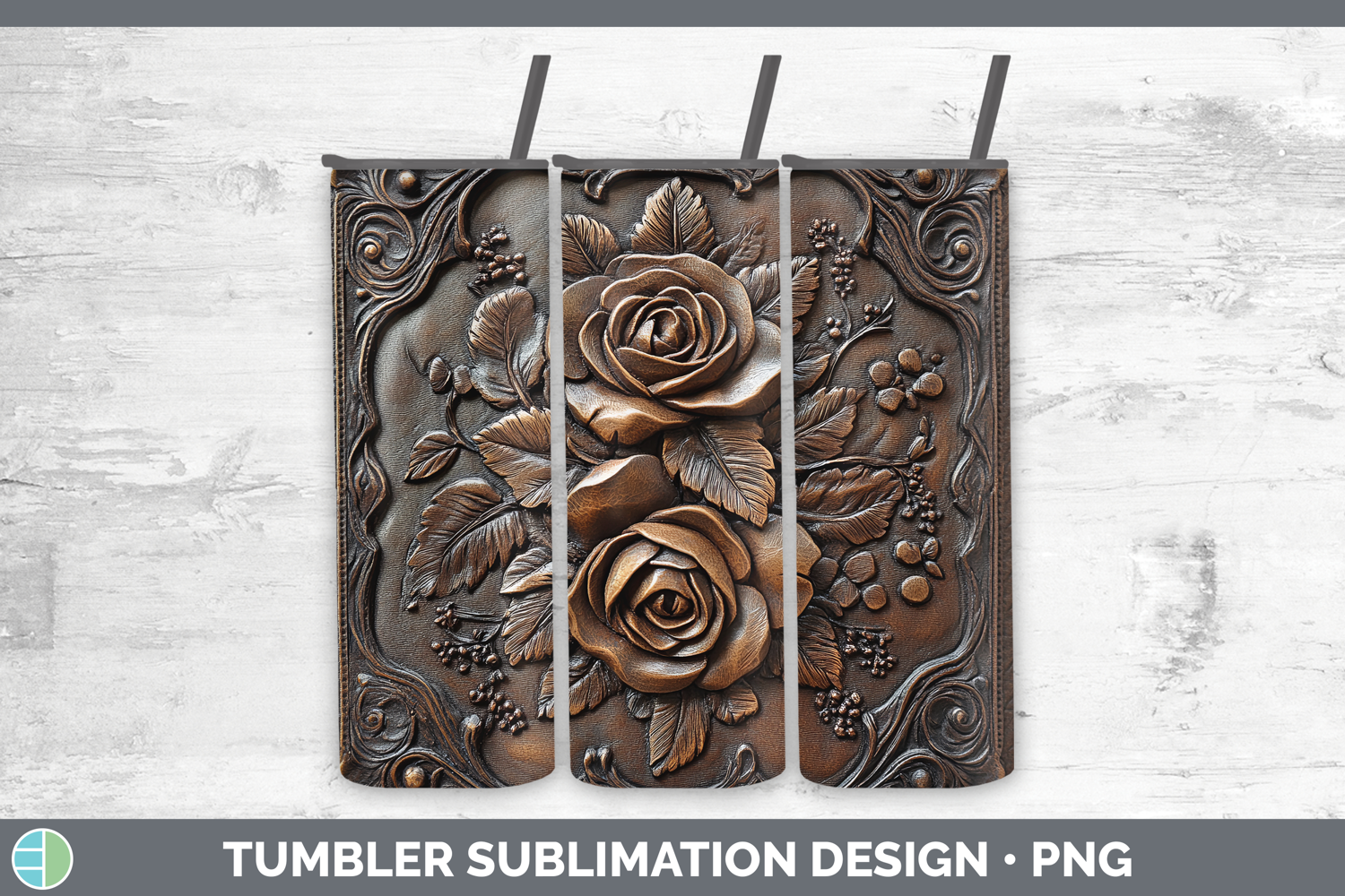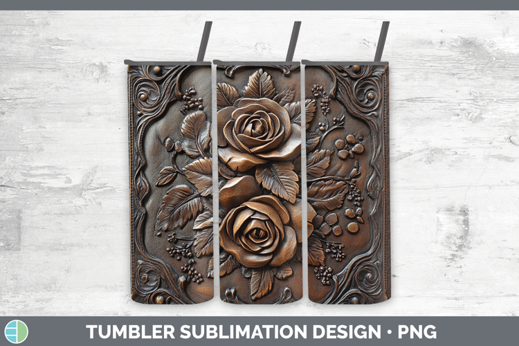 BS01 Tooled Leather Rose Tumbler Sublimation 20 oz Skinny Tu