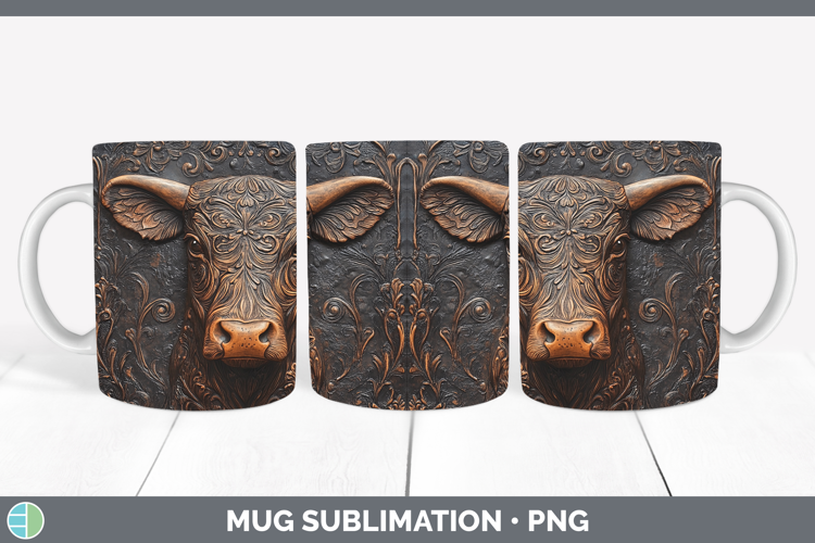 Similar Design Products to BS01 Tooled Leather Cow Mug Wrap Sublimation Coffee Cup Desi