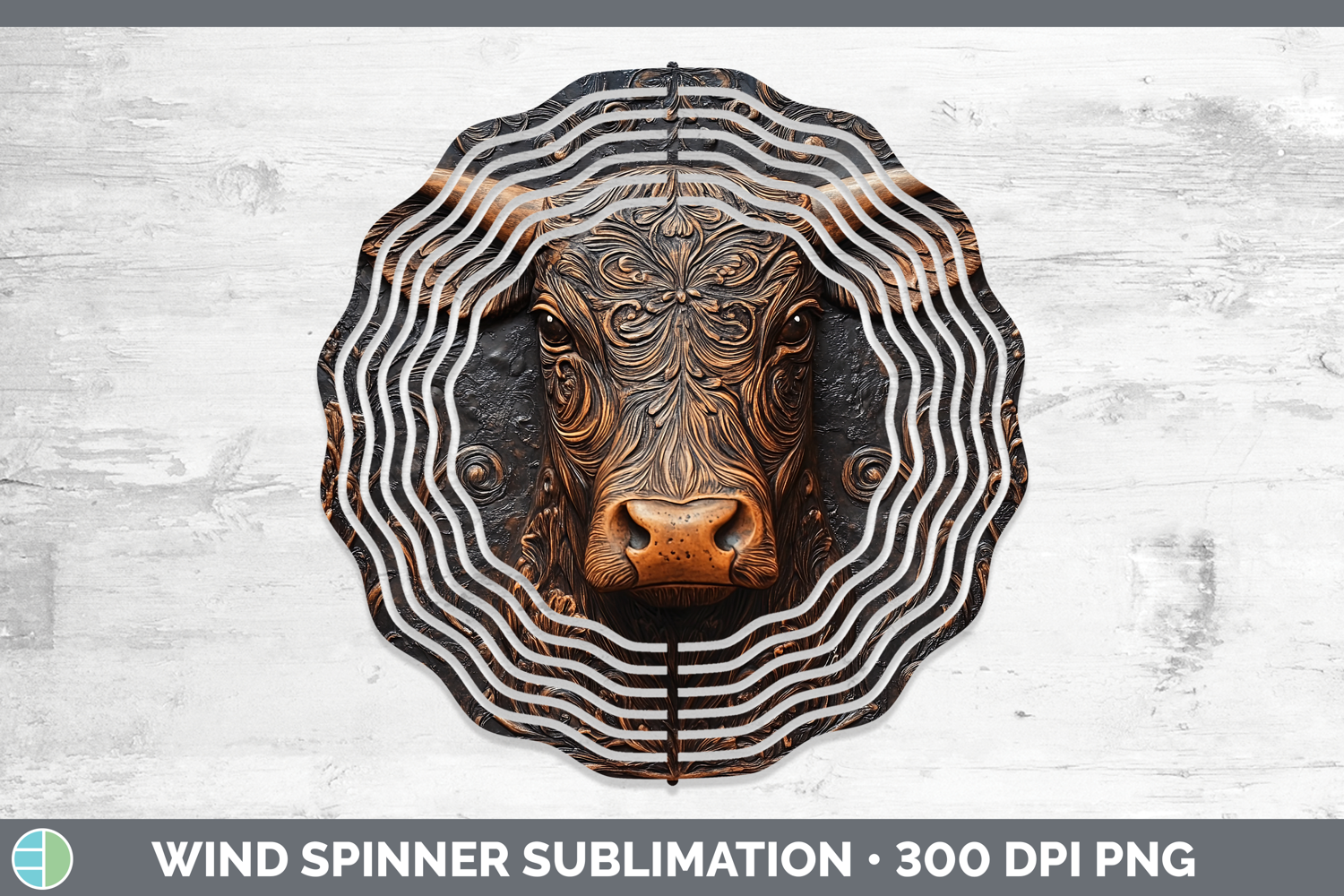 BS01 Tooled Leather Cow Wind Spinner Sublimation Spinner Des