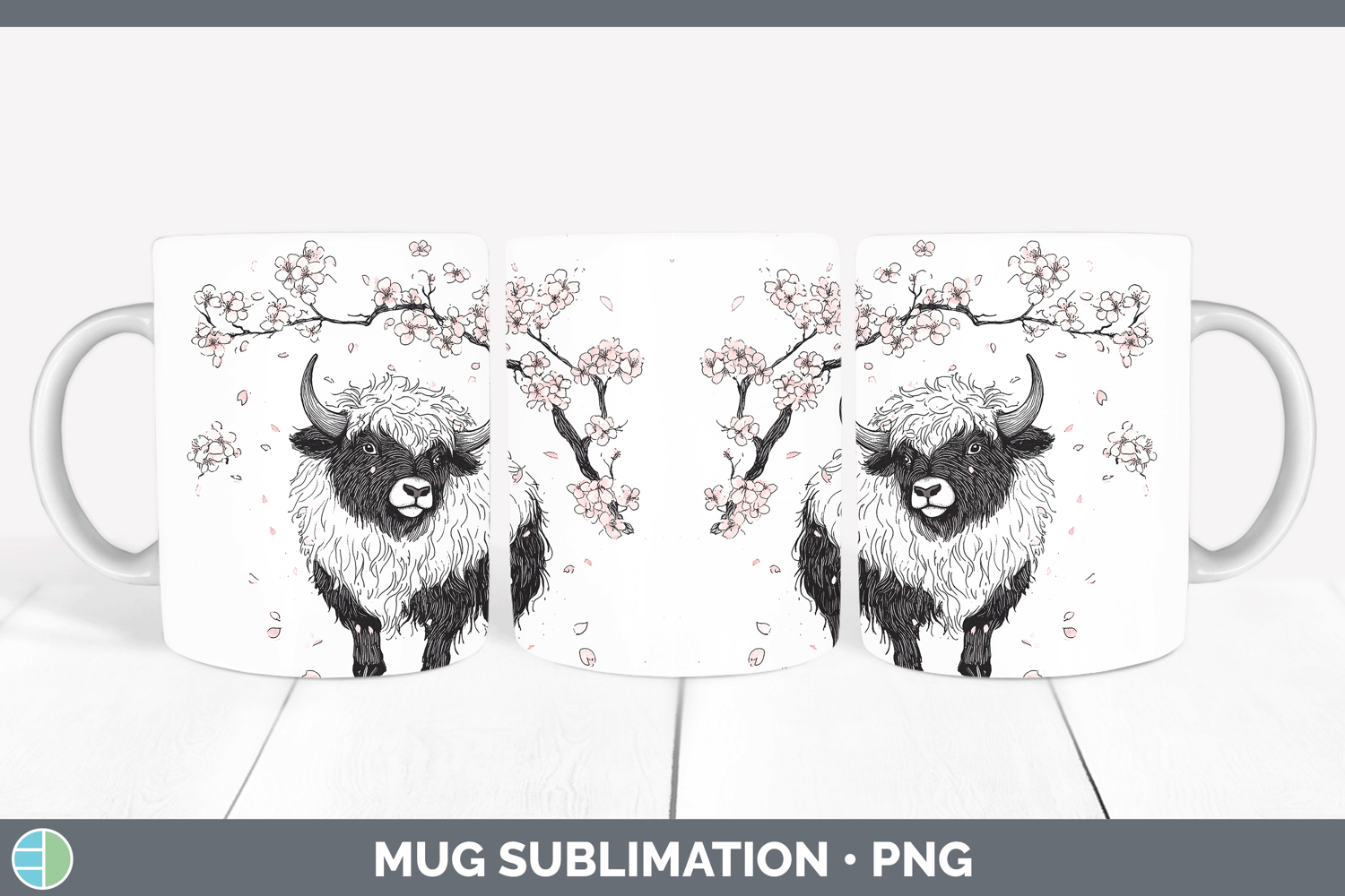 Woodland Sakura Musk Ox Mug Wrap Sublimation Coffee Cup Desi
