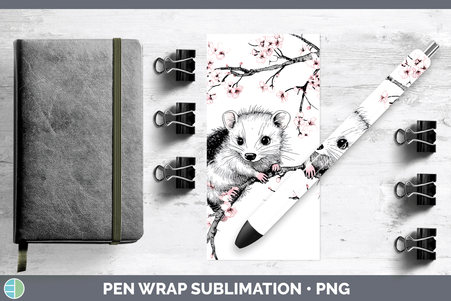 Woodland Sakura Opossum Pen Wrap Sublimation Pen Designs