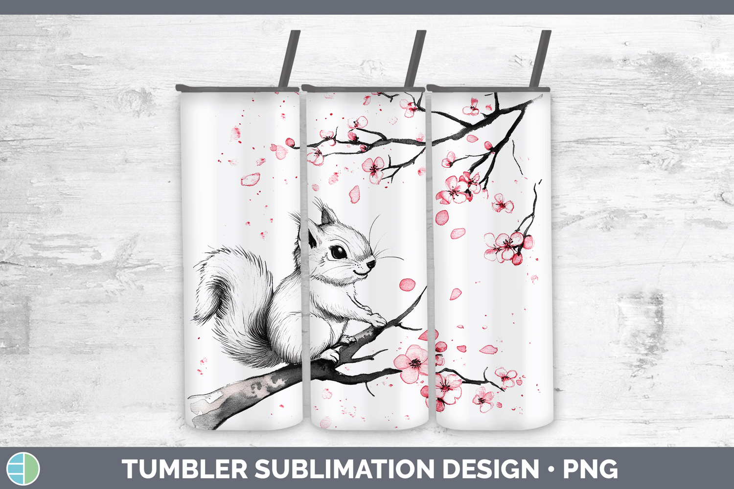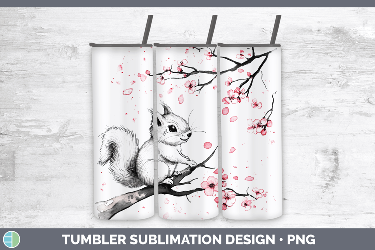 Woodland Sakura Squirrel Tumbler Sublimation 20 oz Skinny Tu