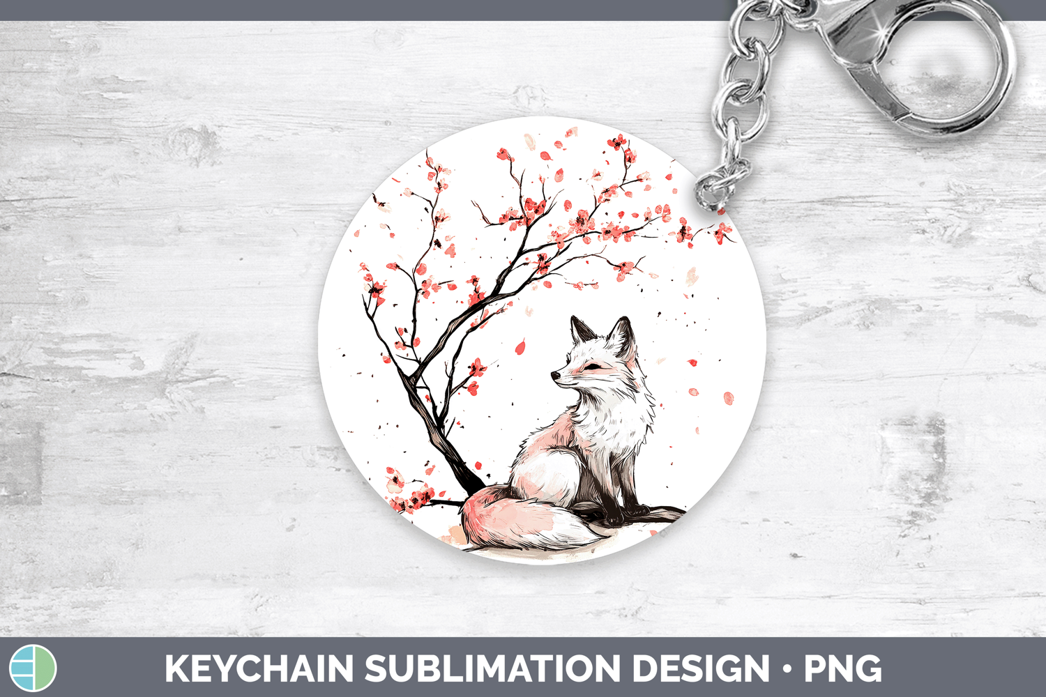 Woodland Sakura Fox Keychain Sublimation Keyring Designs