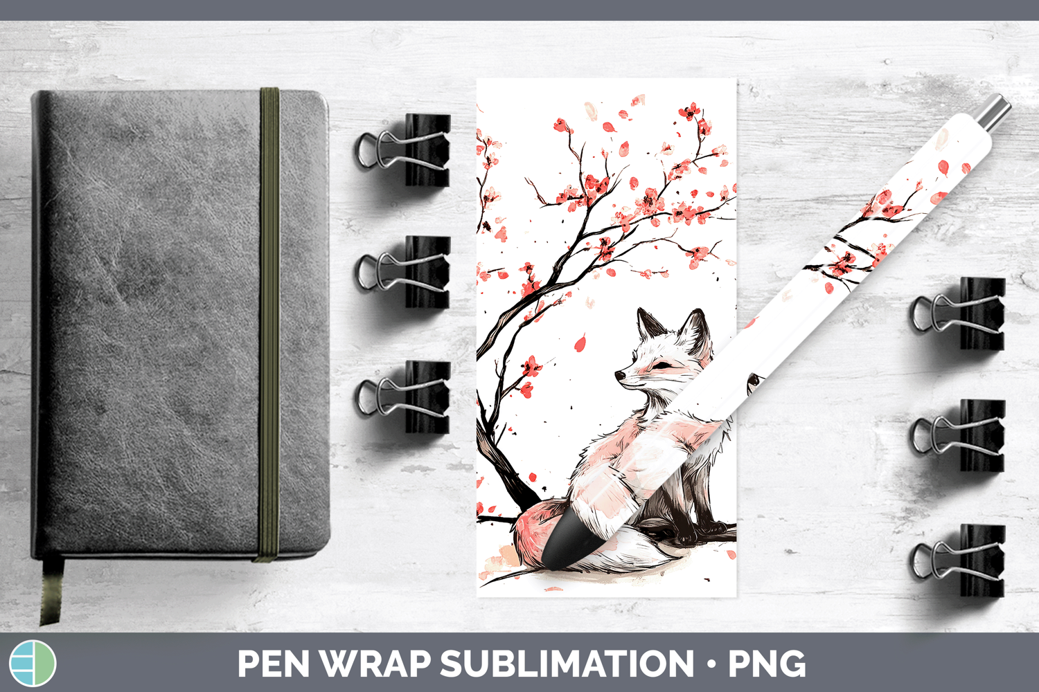 Woodland Sakura Fox Pen Wrap Sublimation Pen Designs