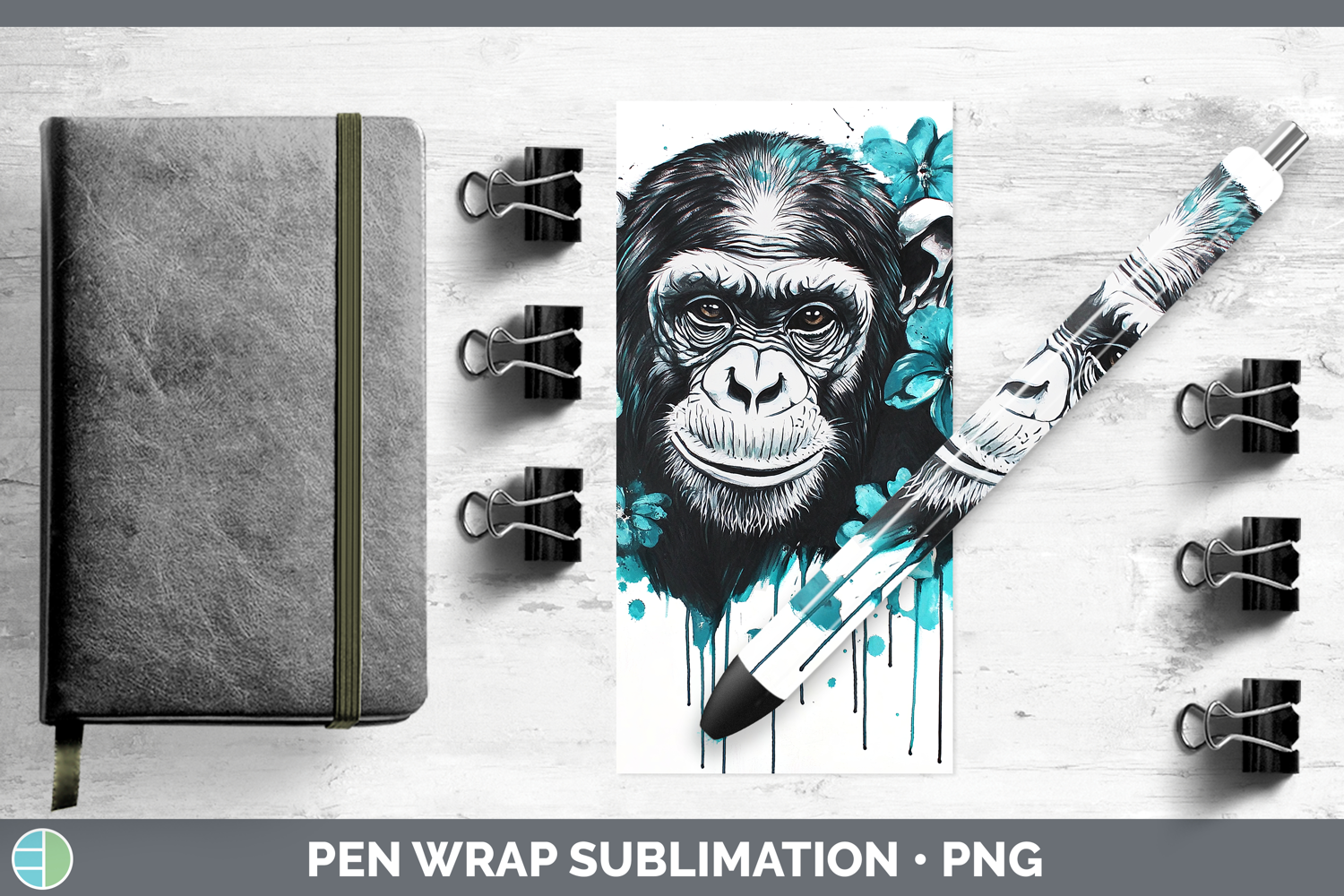 BS05 Teal Drips Chimpanzee Pen Wrap Sublimation Pen Designs