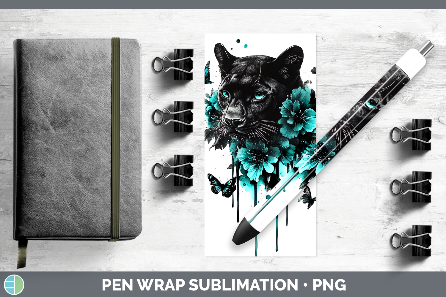 BS05 Teal Drips Panther Pen Wrap Sublimation Pen Designs
