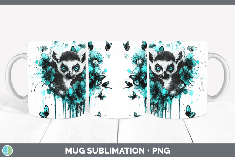 BS05 Teal Drips Lemur Mug Wrap Sublimation Coffee Cup Design