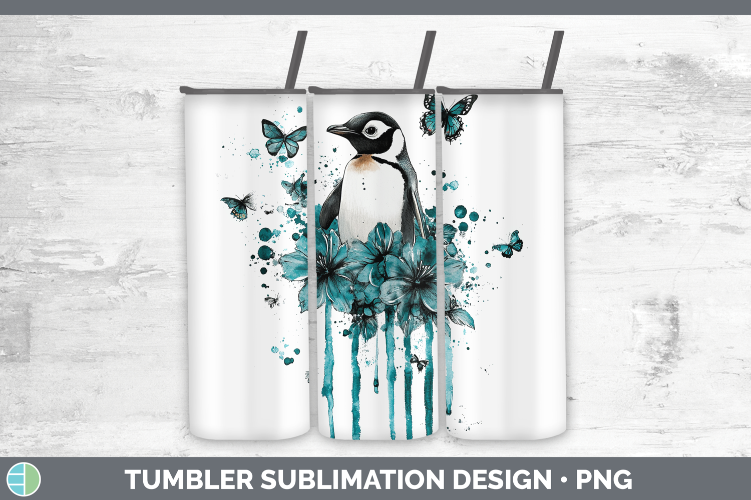 Similar Design Products to BS05 Teal Drips Penguin Tumbler Sublimation 20 oz Skinny Tum