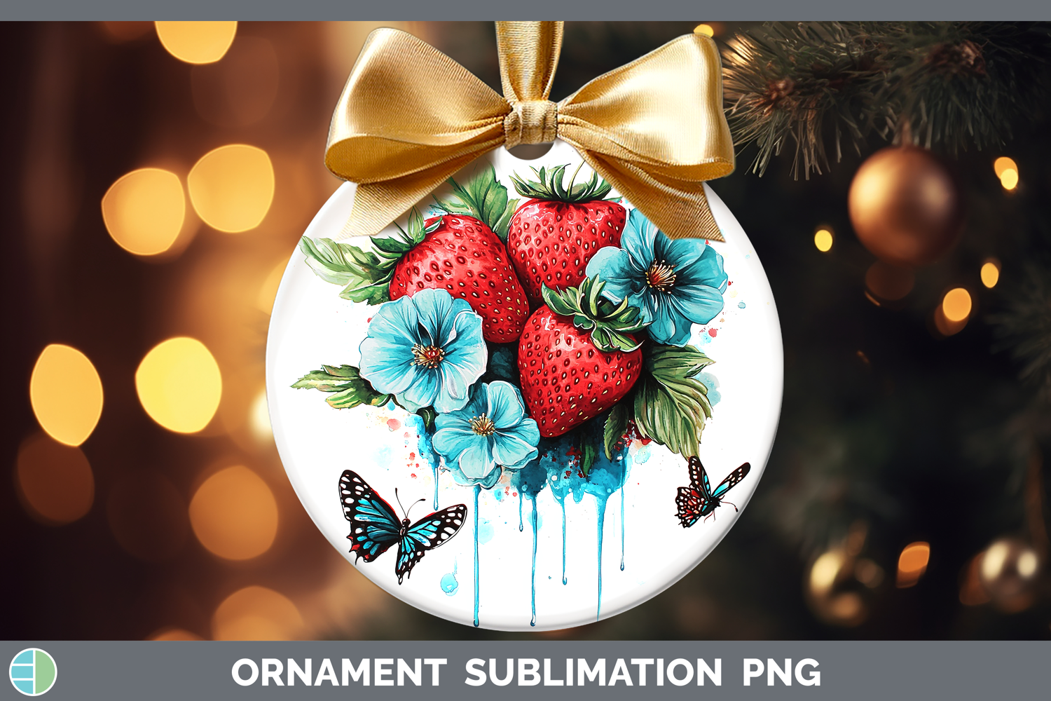 Similar Design Products to BS05 Teal Drips Strawberry Ornament Sublimation Bauble Desig