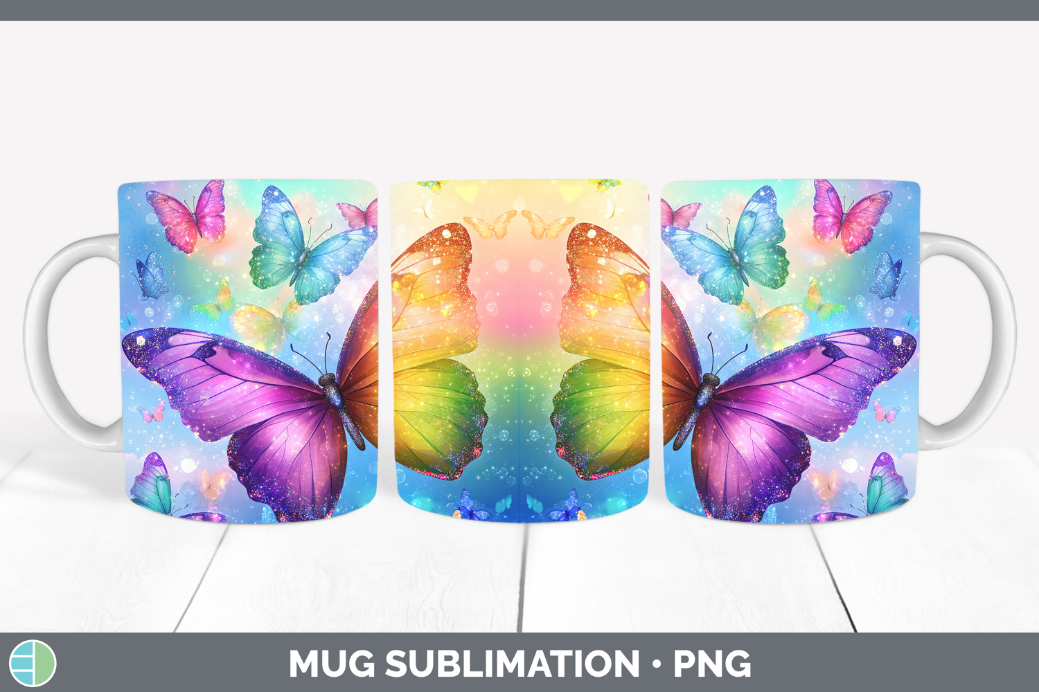 BS01 Glitter Butterfly Mug Wrap Sublimation Coffee Cup Desig