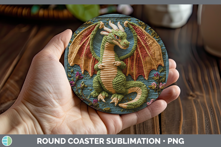 BS02 Crochet Dragon Round Coaster Sublimation Coaster Design