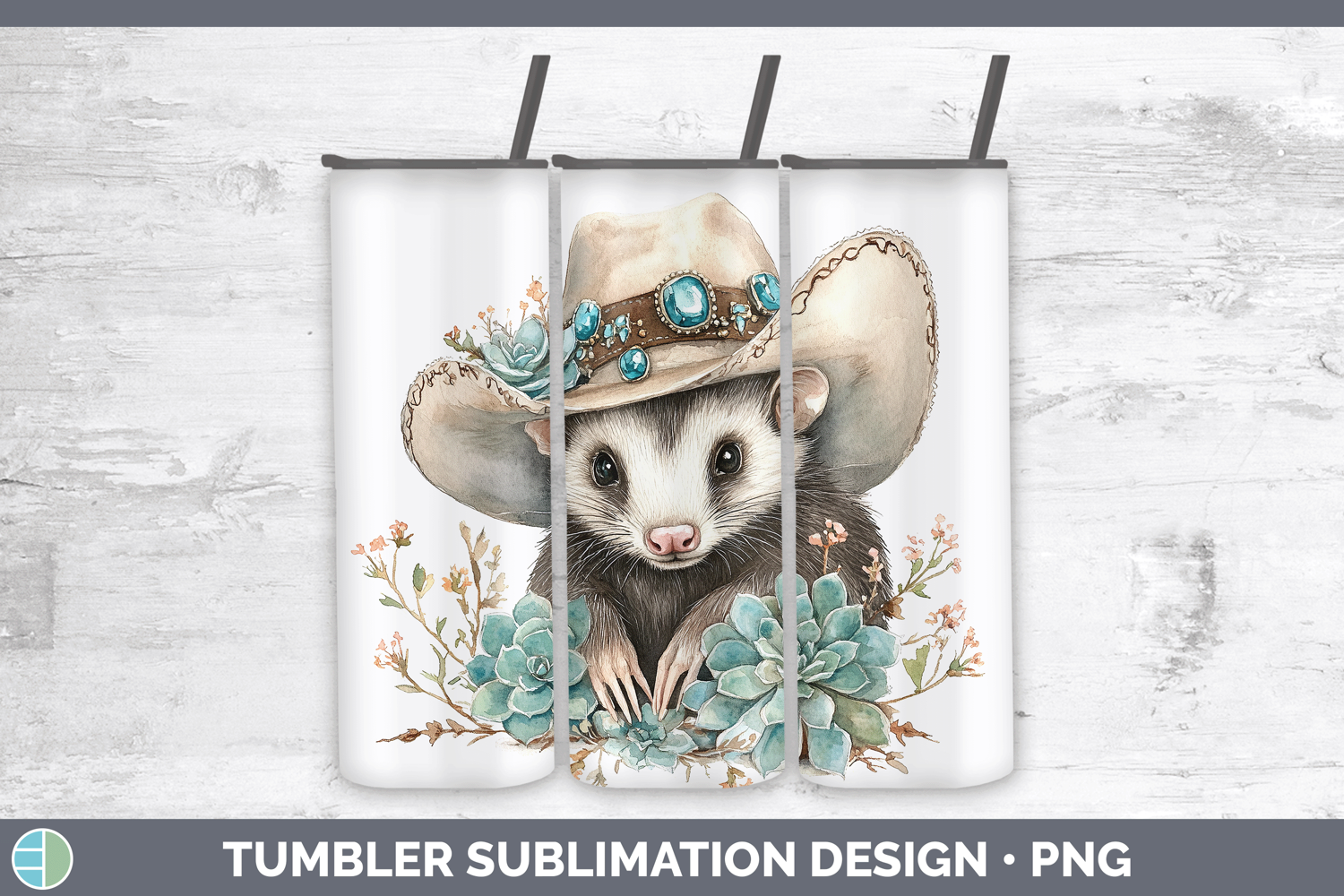 Woodland Teal Cowboy Opossum Tumbler Sublimation 20 oz Skinn