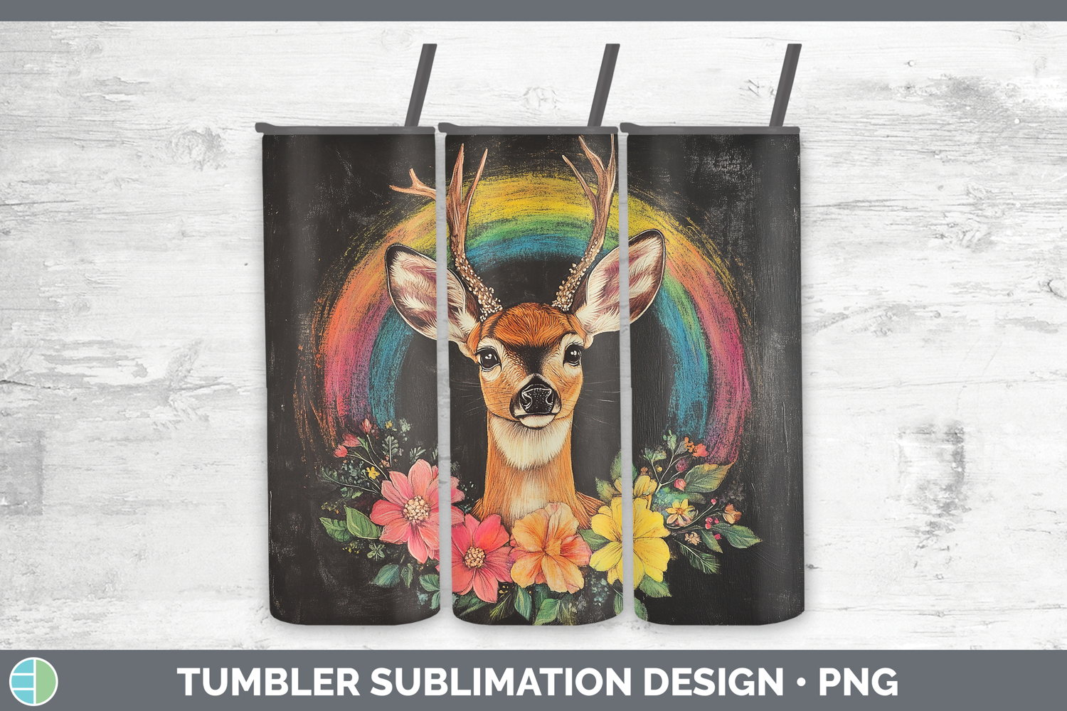 BS02 Rainbow Deer Tumbler Sublimation 20 oz Skinny Tumbler