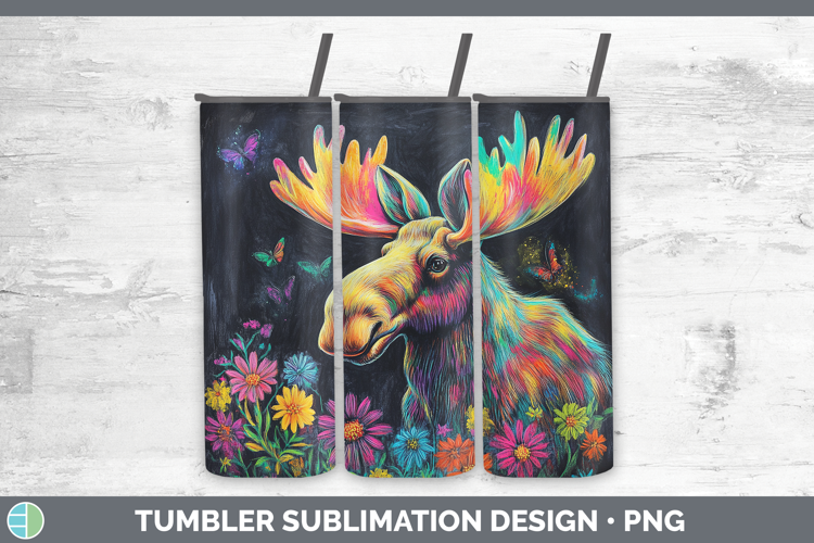 BS02 Rainbow Moose Tumbler Sublimation 20 oz Skinny Tumbler