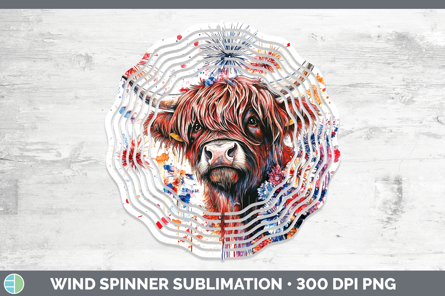 Similar Design Products to Farm Patriotic Splash Highland Cow Wind Spinner Sublimation