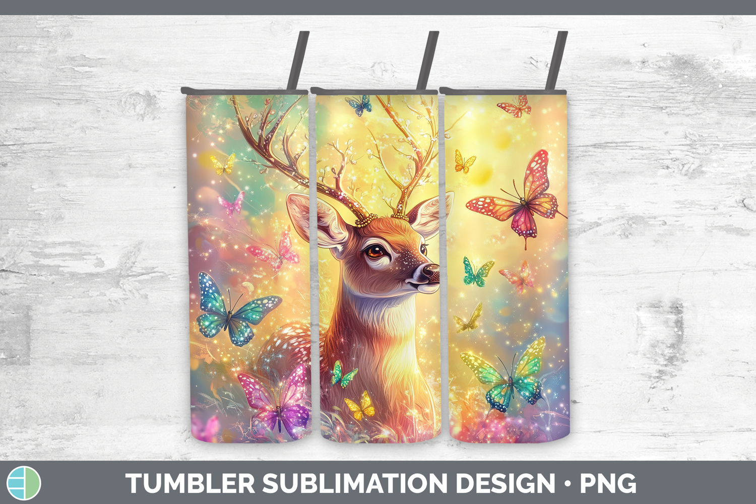 BS02 Glitter Deer Tumbler Sublimation 20 oz Skinny Tumbler D