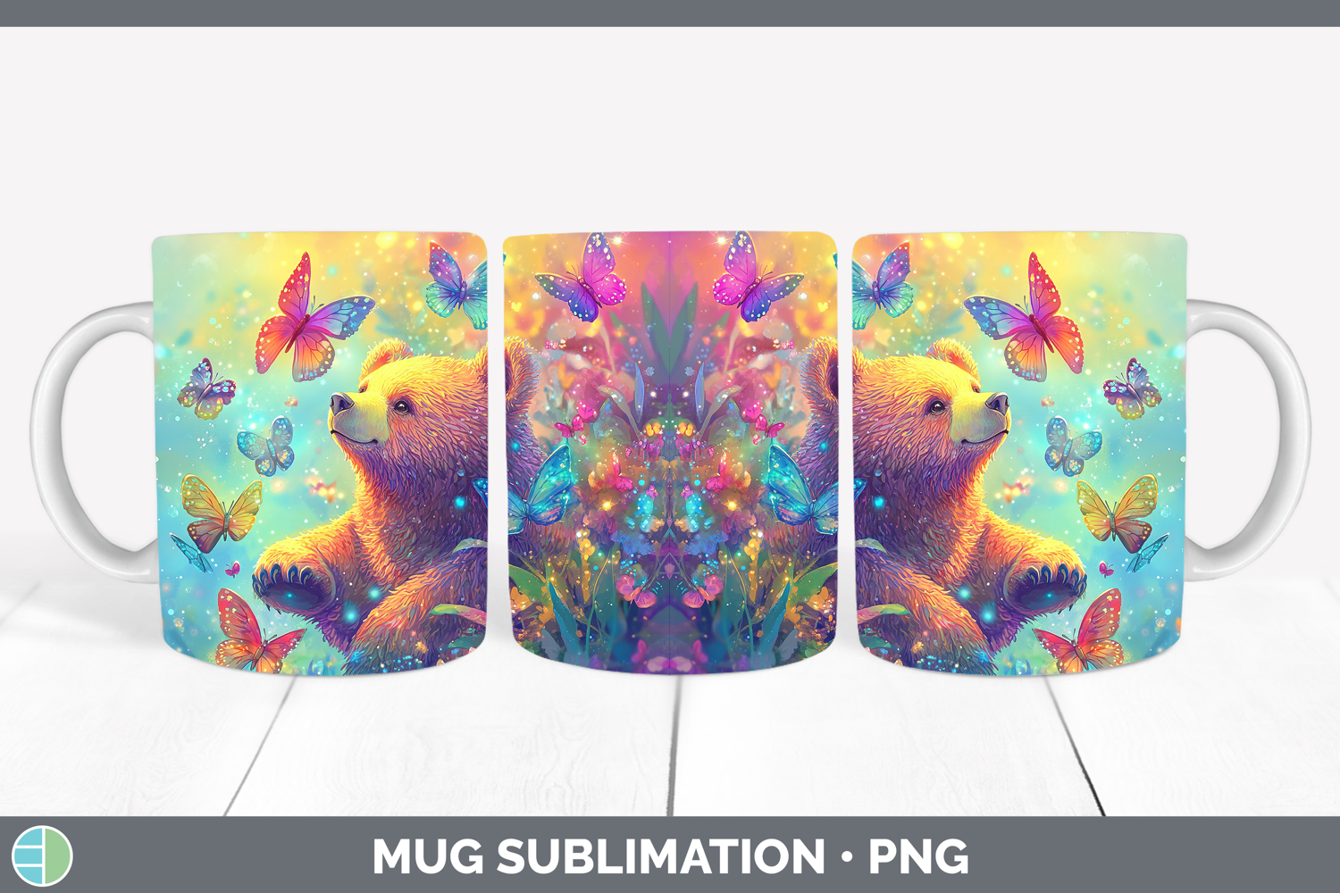BS02 Glitter Bear Mug Wrap Sublimation Coffee Cup Designs