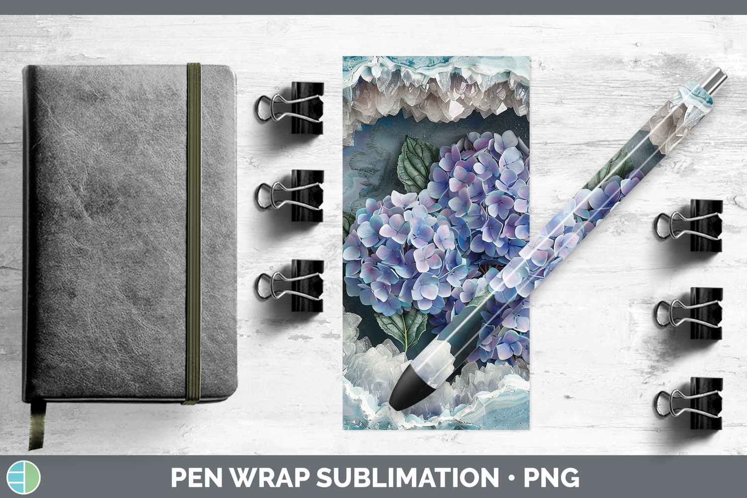 BS03 Geode Hydrangea Pen Wrap Sublimation Pen Designs