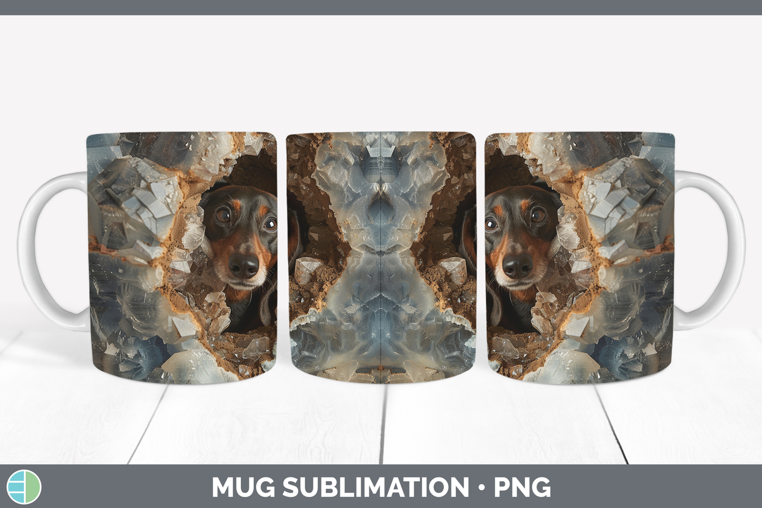 BS03 Geode Dachshund Mug Wrap Sublimation Coffee Cup Designs