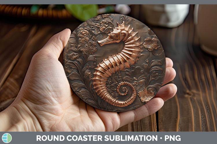 BS04 Copper Relief Seahorse Round Coaster Sublimation Coaste