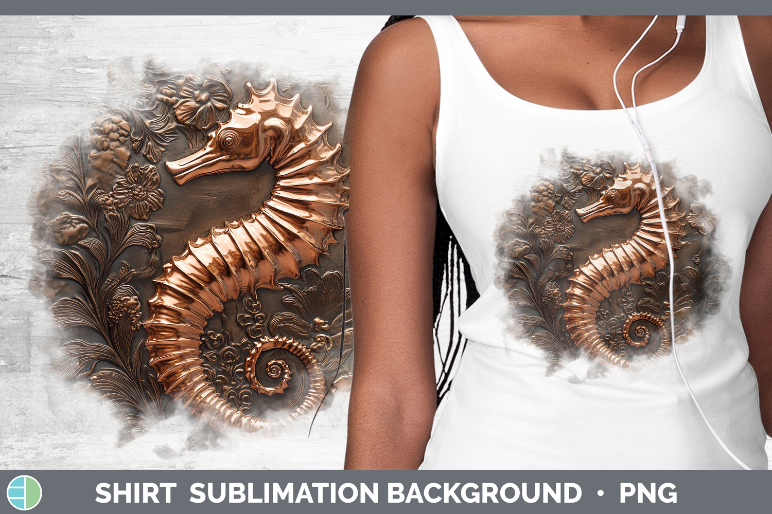 BS04 Copper Relief Seahorse Shirt Sublimation Background Des