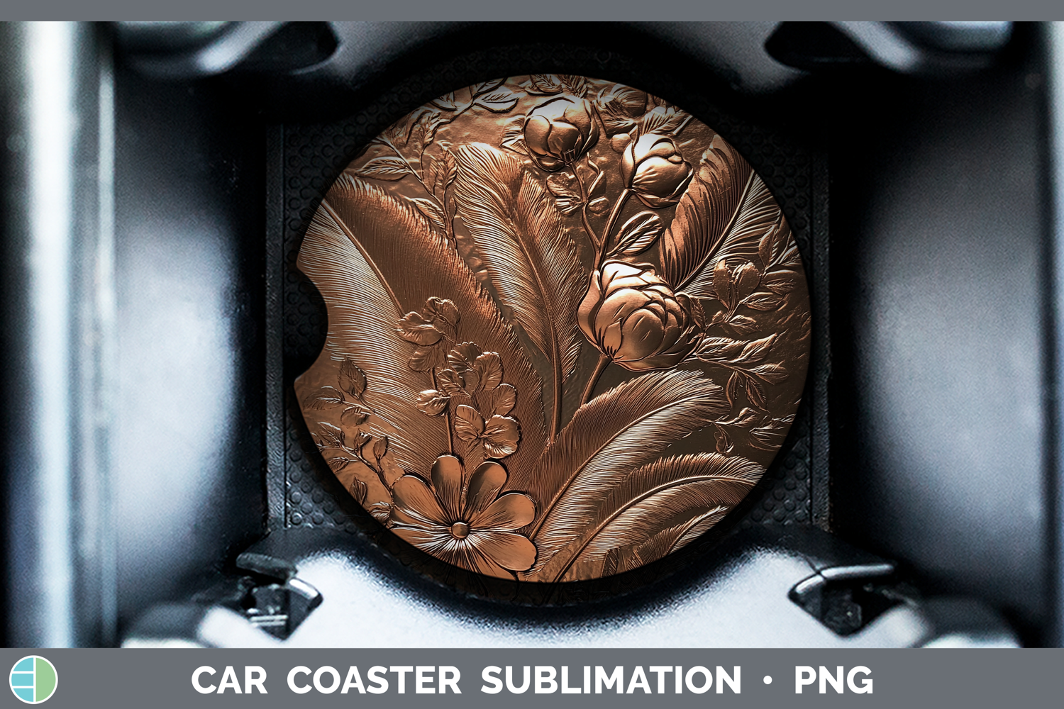 BS04 Copper Relief Boho Feathers Car Coaster Sublimation De