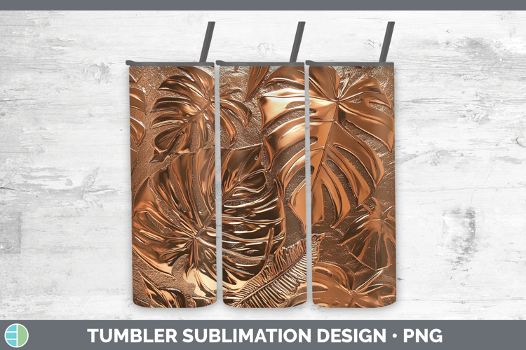 BS04 Copper Relief Monstera Tumbler Sublimation 20 oz Skinny