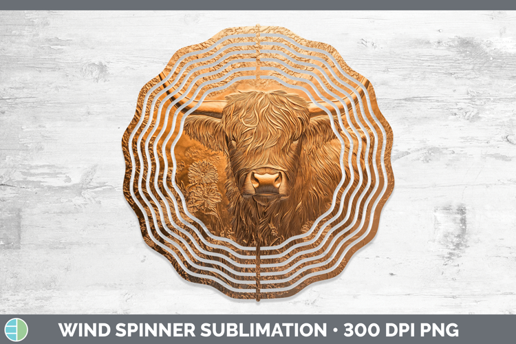 BS04 Copper Relief Highland Cow Wind Spinner Sublimation Spi