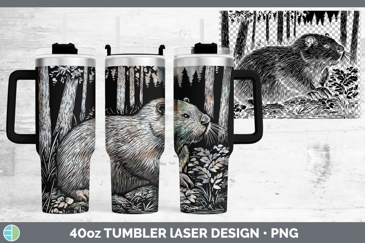 Woodland Animals Etch Beaver Laser 40oz Tumbler Sublimation