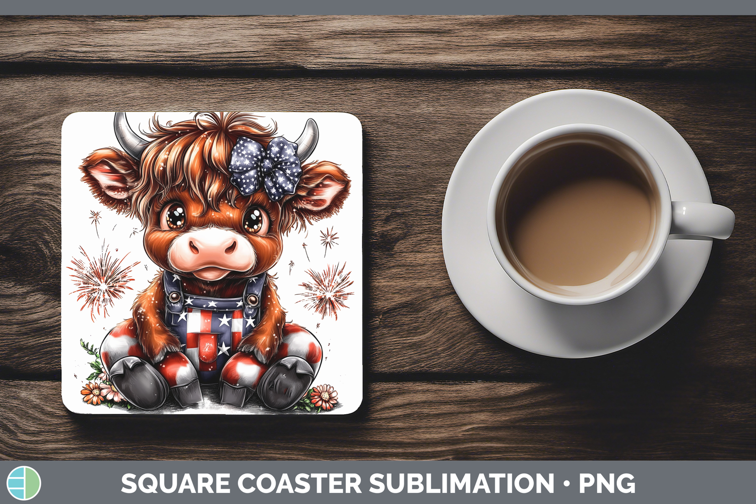 Animals Fourth of July Highland Cow Square Coaster Sublimati