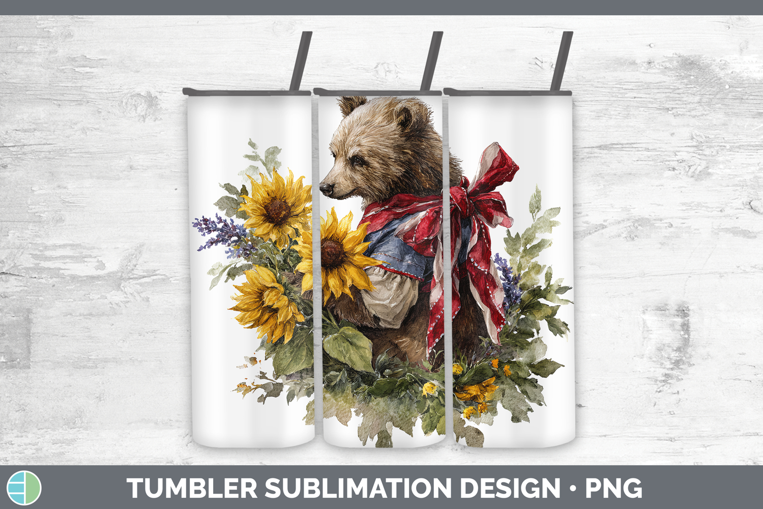 Similar Design Products to Animals Sunflower Patriotic Bear Tumbler Sublimation 20 oz S