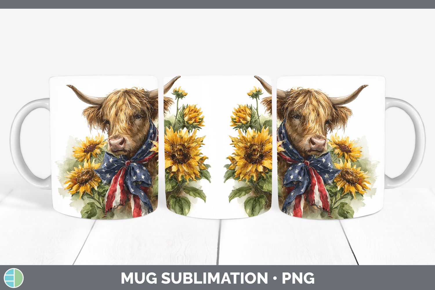 Animals Sunflower Patriotic Highland Cow Mug Wrap Sublimatio example image 1