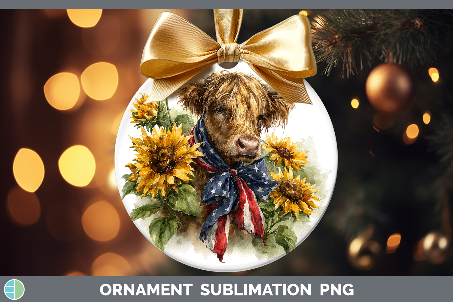 Similar Design Products to Animals Sunflower Patriotic Highland Cow Ornament Sublimatio