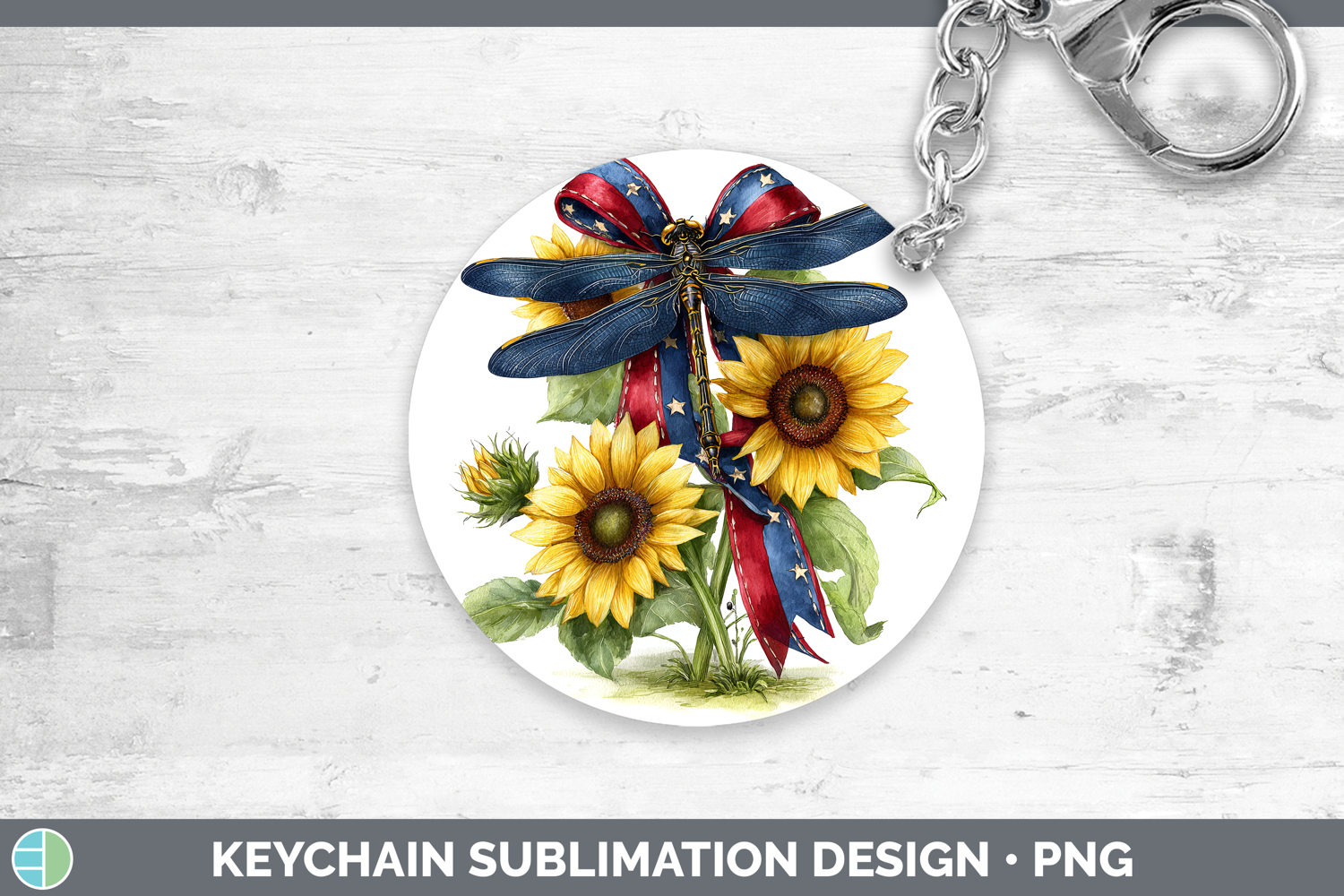 Animals Sunflower Patriotic Dragonfly Keychain Sublimation K example image 1