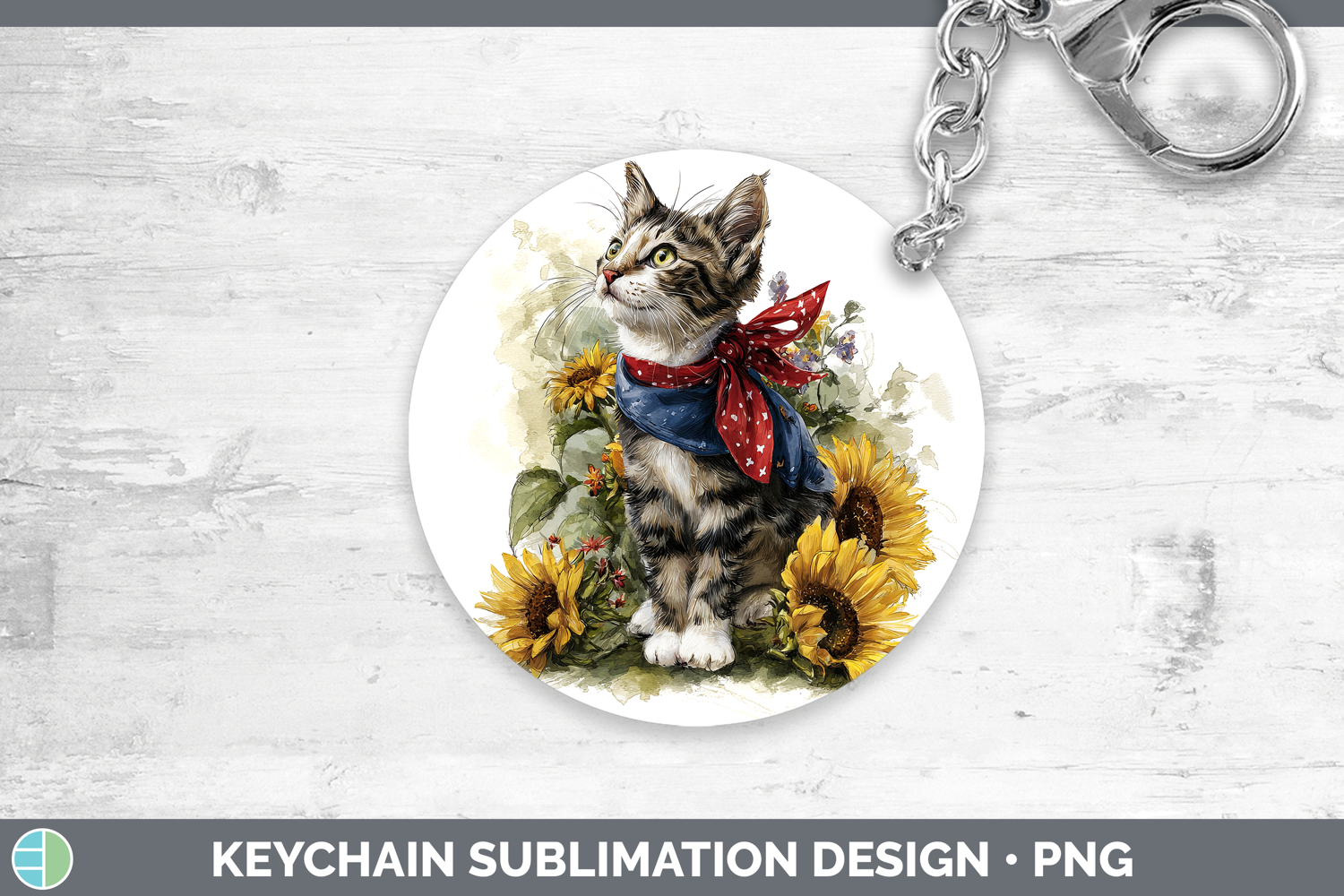 Animals Sunflower Patriotic Kitten Keychain Sublimation Keyr