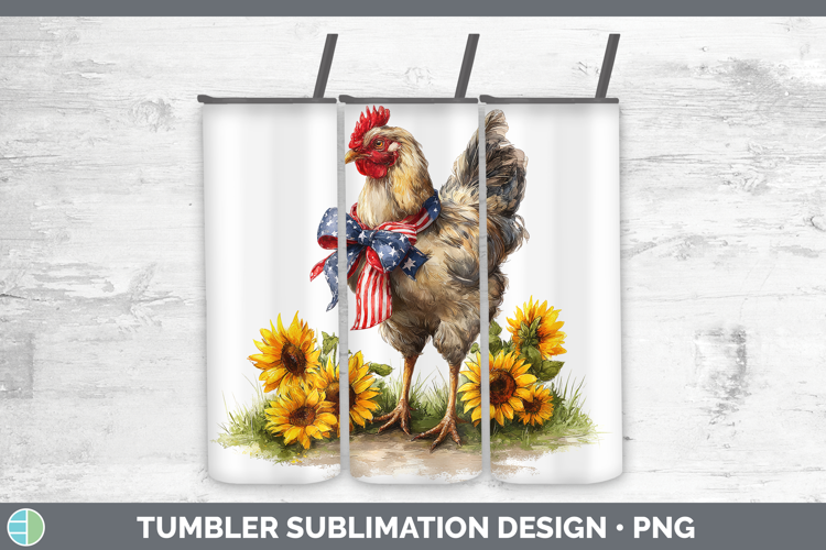 Animals Sunflower Patriotic Chicken Tumbler Sublimation 20 o