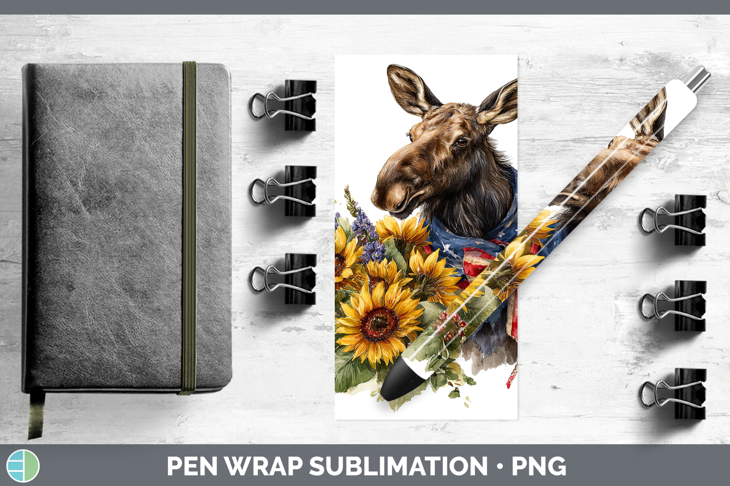 Animals Sunflower Patriotic Moose Pen Wrap Sublimation Pen D