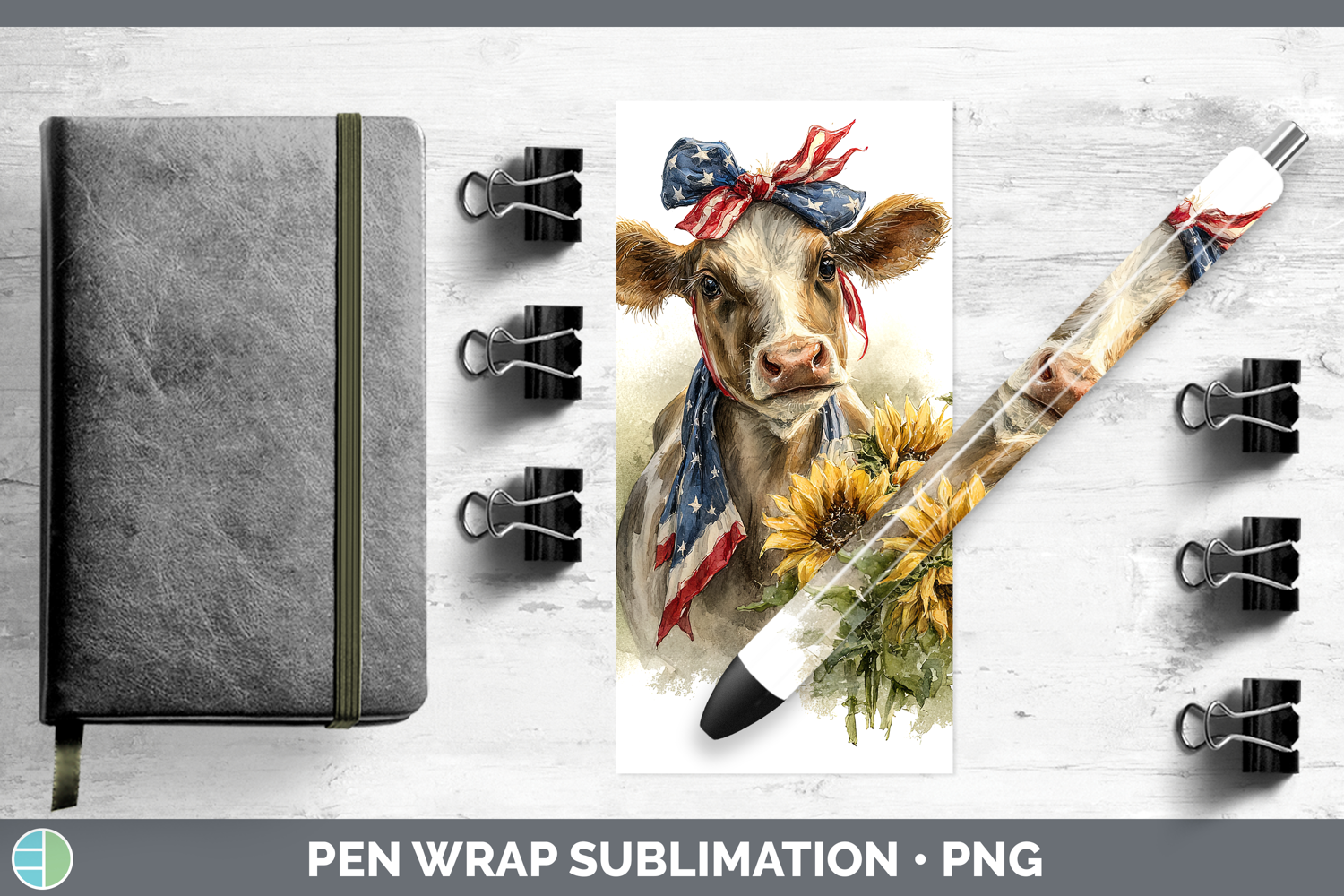 Similar Design Products to Animals Sunflower Patriotic Cow Pen Wrap Sublimation Pen Des