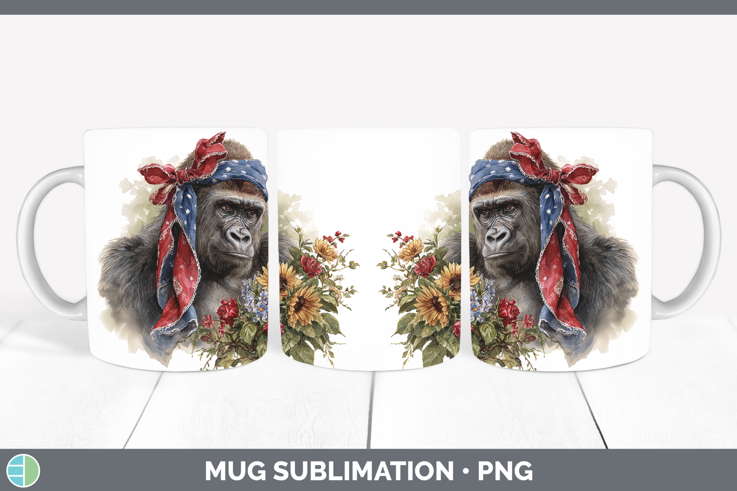Animals Sunflower Patriotic Gorilla Mug Wrap Sublimation Cof