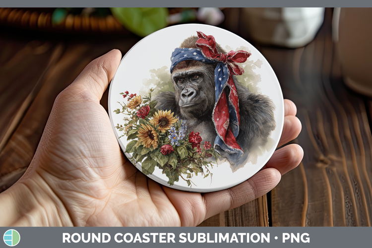 Similar Design Products to Animals Sunflower Patriotic Gorilla Round Coaster Sublimatio